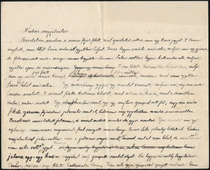 Leírás: cca 1940 Kézzel írt beszéd csupa "e" betűvel