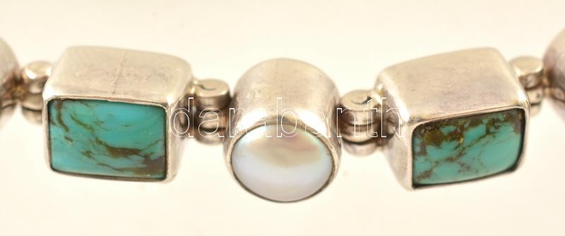 Leírás: Ezüst(Ag) türkizzel és gyöngyökkel díszített karkötő, jelzett, h: 17 cm, bruttó: 24,5 g