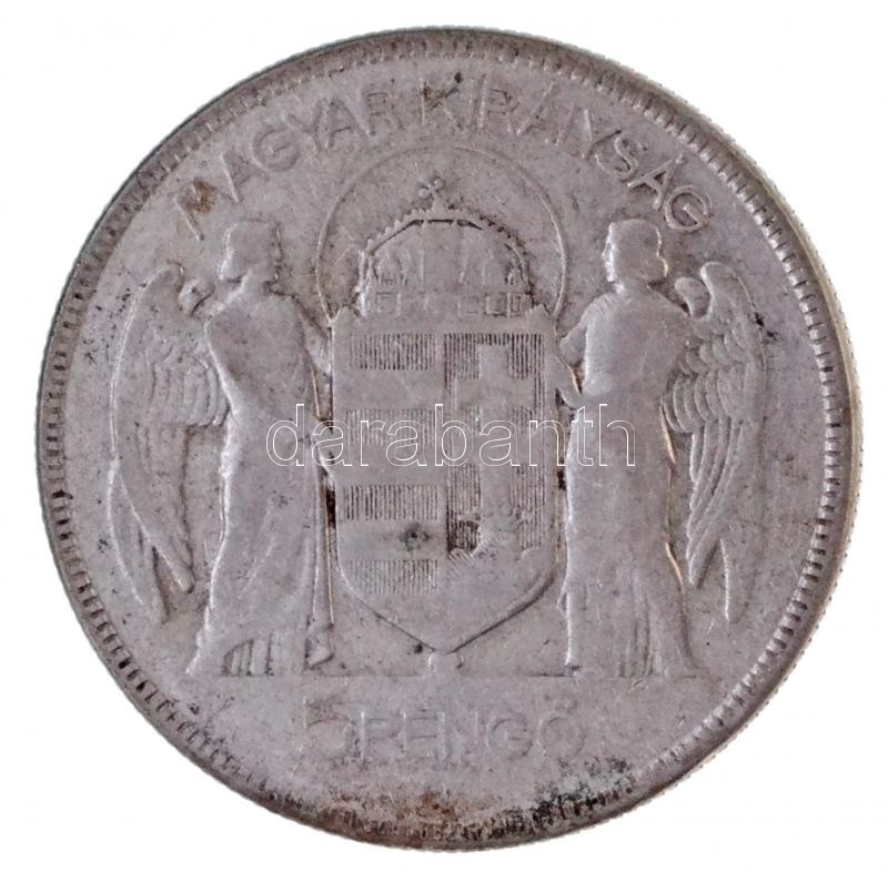 Leírás: 1930. 5P Ag "Horthy jobbra" T:3