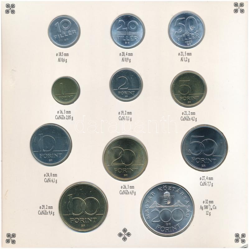 Leírás: 1993. 10f-200Ft (11xklf) forgalmi sor dísztokban, benne 200Ft Ag "MNB", "Magyarország pénzérméi" sorozat T:BU Adamo FO26