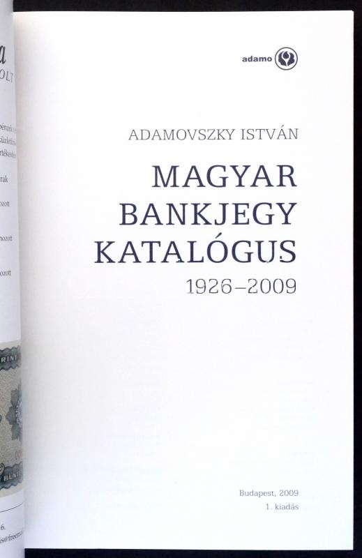 Adamovszky István: Magyar bankjegy katalógus 1926-2009. Budapest, 2009... https://www.darabanth.com/hu/362-Gyorsarveres/362.0/Numizmatika/Numizmatikai-irodalom~1500002/Adamovszky-Istvan-Magyar-bankjegy-katalogus-1926-2009-Budapest-2009-Uj-allapotban~II2080213