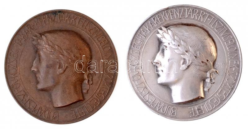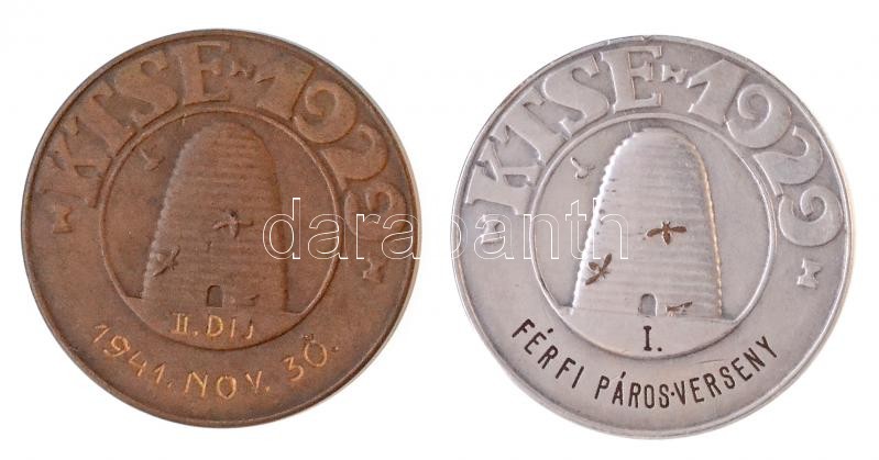 Leírás: Erdey Dezső (1902-1957) 1932. "Budapest Székesfőváros Községi Takarékpénztár RT Tisztviselőinek Sportegyesülete / KTSE 1929." ezüstözött Br emlékérem, gravírozva "Férfi Páros Verseny I.", peremén "BRONZ" fémjel (35mm) + 1941. "Budapest Székesfőváros Községi Takarékpénztár RT Tisztviselőinek Sportegyesülete / KTSE 1929." Br emlékérem, gravírozva "1941. Nov. 30. II. Díj" (35mm) T:1-,2