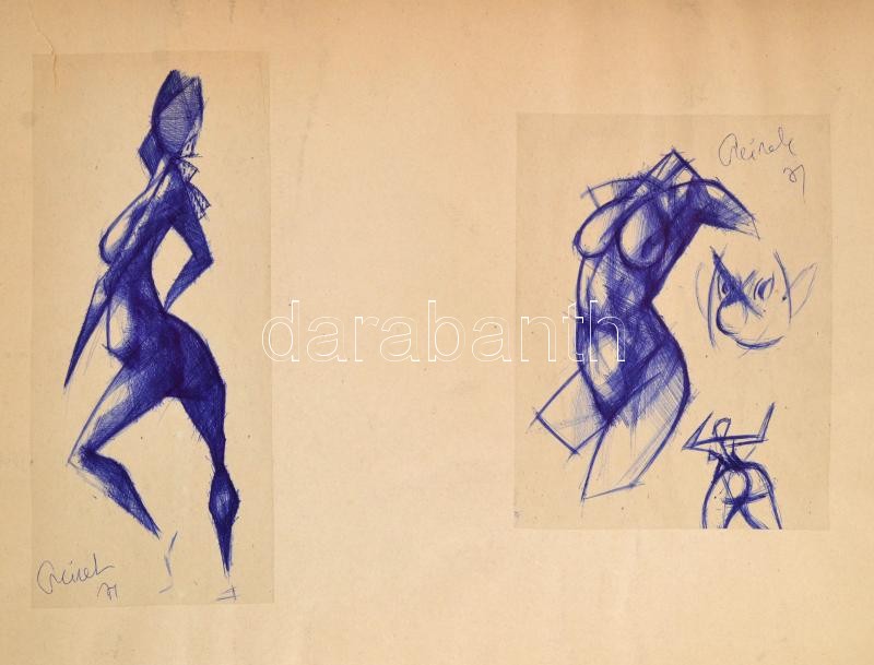 Leírás: Czeizek György (1953-1980): Női akt (tanulmány). Toll, papír, jelzett, 30×13 és 22×18 cm (2 db)