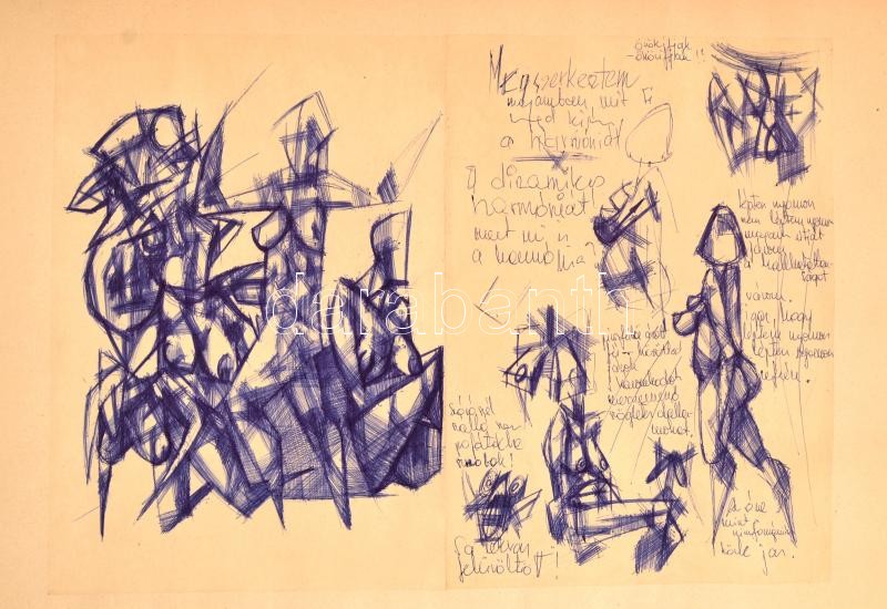Leírás: Czeizek György (1953-1980): Női aktok (tanulmány). Toll, papír, jelzett, 30×41 cm
