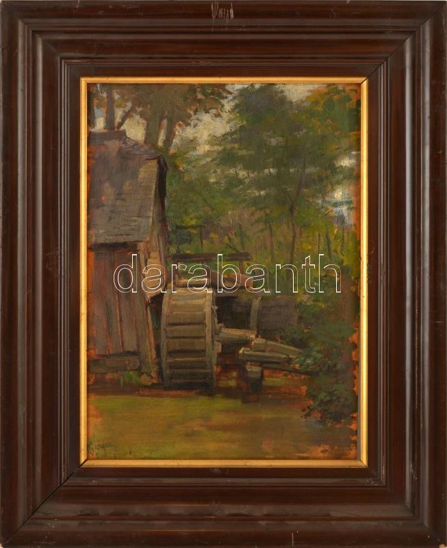 Leírás: Gergely Imre (1868-1957): Öreg vízimalom. Olaj, falemez, jelzett, keretben, 35×26 cm