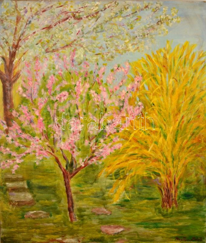Leírás: Márffy jelzéssel: Virágzó fa. Olaj, farost, 80×68 cm