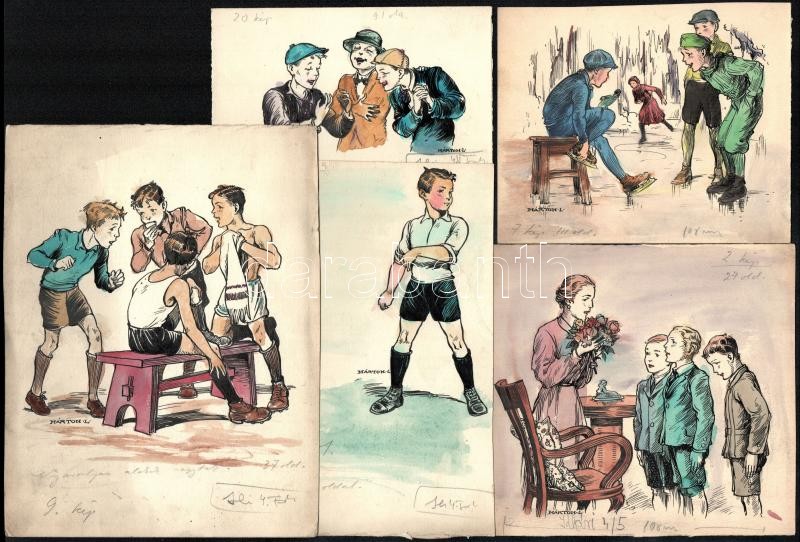 Leírás: Márton Lajos (1831-1953): Illusztrációk (28 db). Tus-akvarell, papír, jelzett, 10×15-22×17 cm