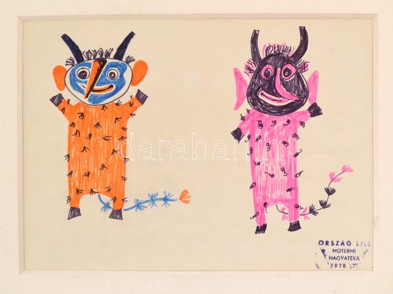 Ország Lili (1926-1978): Ördögöcskék. Színes filctoll, papír, hagyat... https://www.darabanth.com/hu/363-Gyorsarveres/363.0/Festmenyek-es-grafikak/Festmenyek-es-grafikak~500001/Orszag-Lili-1926-1978-Ordogocskek-Szines-filctoll-papir-hagyateki-belyegzovel-ere~II2100641