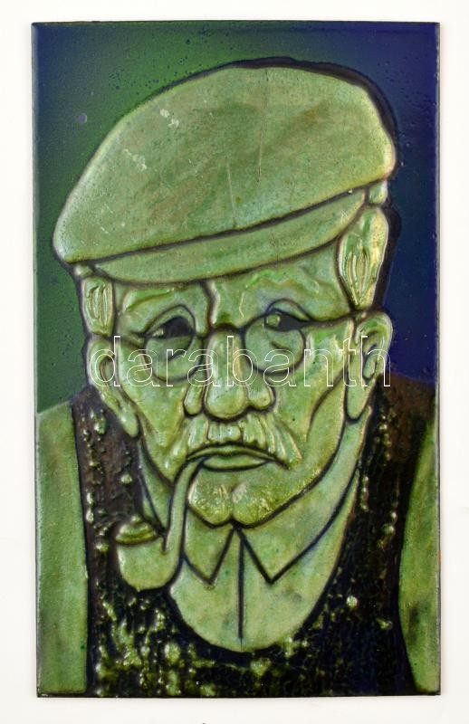 Leírás: Stekly Zsuzsa (1954-): Pipás öreg. Tűzzománc, fém, kis kopásokkal, 20×12 cm