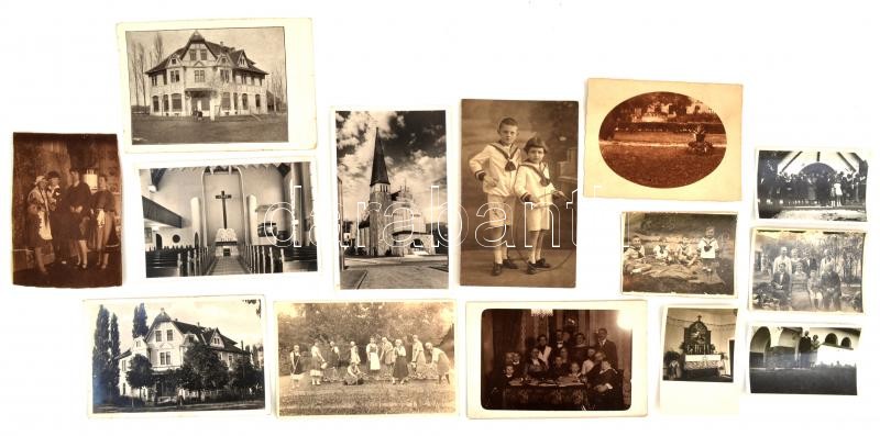 Leírás: cca 1916-1953 Vegyes fotó, fotólap és képeslap tétel, 14 db, 8x6 cm és 10x14 cm közötti méretben