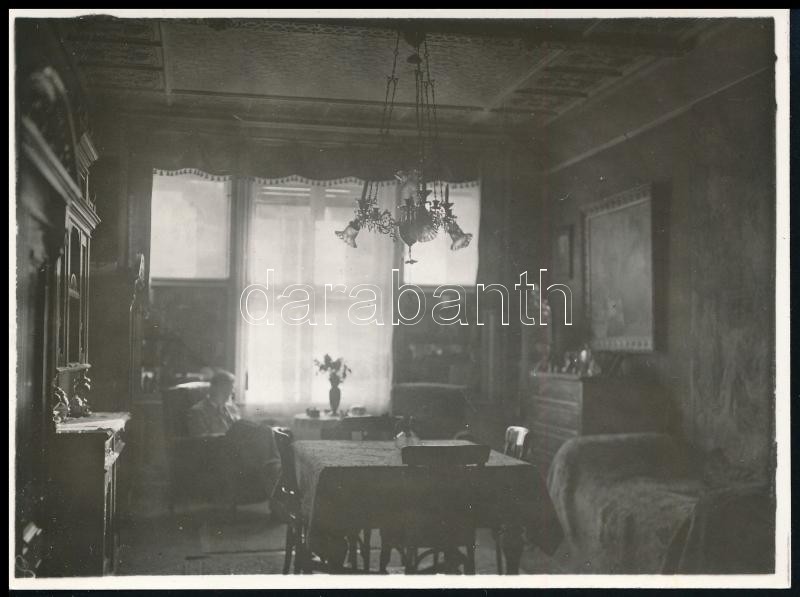 Leírás: cca 1930 Budapest, Tabán, Kereszt tér 3. szám alatt található ház fogadószobája, hátoldalon feliratozott fotó, 11×8 cm