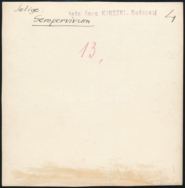 Leírás: cca 1932 Kinszki Imre (1901-1945) budapesti fotóművész pecséttel jelzett, vintage fotóművészeti alkotása (Sempervivum), 12,8x12,6 cm