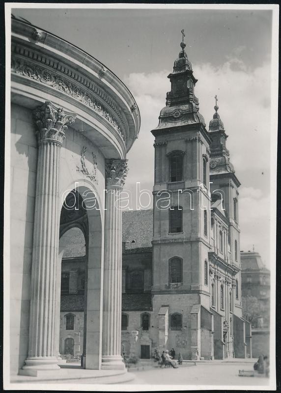 cca 1934 Kinszki Imre (1901-1945) budapesti fotóművész jelzés nélküli vintage fotója, az általa összeállított gyűjtőalbumból kiemelve (Erzsébet királynő emlékműve az Eskü téren), 8,2x5,8 cm