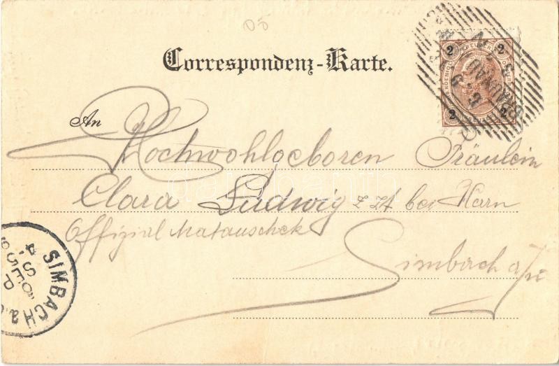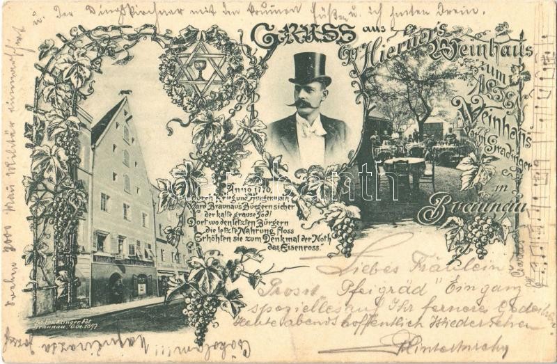 Leírás: 1898 Braunau, Hierner's Weinhaus zum Alten Weinhaus vorm. Gradinger / Hierner's wine hall and café, inn, Star of David. Art Nouveau, floral