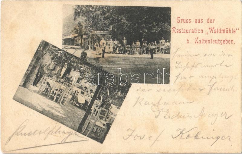 Leírás: 1898 Kaltenleutgeben, Restauration Waldmühle / restaurant, railway station, waiters and guests (fl)