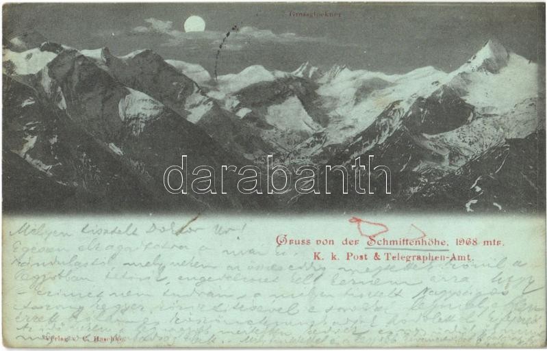 Leírás: 1899 Schmittenhöhe (Zell am See), K. k. Post & Telegraphen-Amt, Grossglockner / K.u.K. post and telegraph office, mountains. Verlag v. C. Haschke (EK)
