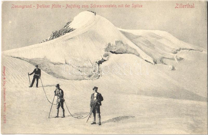 Leírás: Zillertal (Tirol), Zemmgrund, Berliner Hütte, Aufstieg zum Schwarzenstein mit der Spitze / winter mountain climbers (EK)