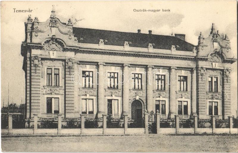 1917 Temesvár, Timisoara; Osztrák-magyar bank / Austro-Hungarian bank https://www.darabanth.com/hu/363-Gyorsarveres/363.0/Kepeslapok/Erdely~1500006/1917-Temesvar-Timisoara-Osztrak-magyar-bank-Austro-Hungarian-bank~II2098081