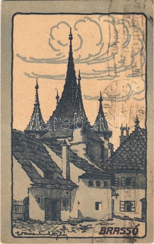 1922 Brassó, Kronstadt, Brasov; Katalin-kapu, a XV. század elején épült, ma már befalazott Katalin-kapu Brassó régi erődítményeinek egyik utolsó maradványa. Kiadja a "Magyar Jövő" / Poarta Ecaterinei / gate, artist signed (EK)