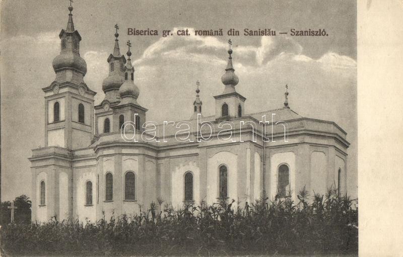 Leírás: Szaniszló, Sanislau, Stanislau; Román görög katolikus templom / Biserica gr. cat. romana / church (EK)