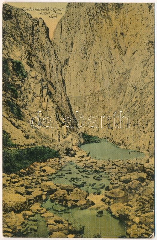 Leírás: Tordai-hasadék, Cheile Turzii, Torda, Turda; Tordai hasadék bejárata Ilona tóval. Füssy József kiadása / Cheia Turzii / gorge, lake (ázott / wet damage)