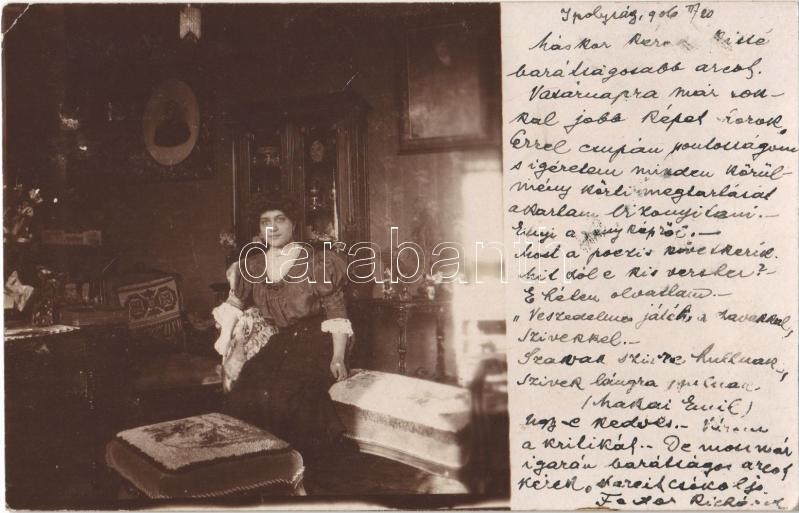 1906 Ipolyság, Sahy; úri lakás belső / gentry house interior. photo (E... https://www.darabanth.com/hu/363-Gyorsarveres/363.0/Kepeslapok/Felvidek~1500007/1906-Ipolysag-Sahy-uri-lakas-belso-gentry-house-interior-photo-EK~II2097374