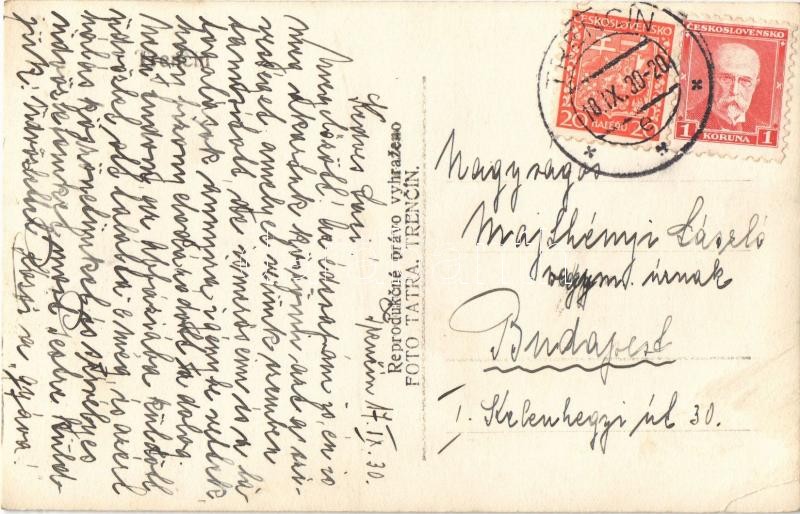 Leírás: 1930 Trencsén, Trencín; vár / castle. Foto Tatra, photo (EK)