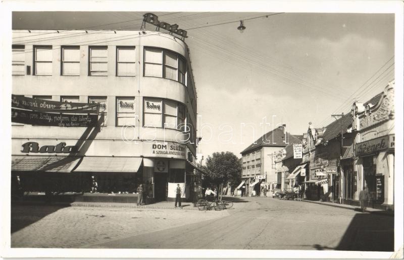1938 Érsekújvár, Nové Zámky; utca, Bata, A Szolgálatkészség háza, Kren... https://www.darabanth.com/hu/363-Gyorsarveres/363.0/Kepeslapok/Felvidek~1500007/1938-Ersekujvar-Nove-Zamky-utca-Bata-A-Szolgalatkeszseg-haza-Krenek-Teutsch-es-Blau-~II2099452