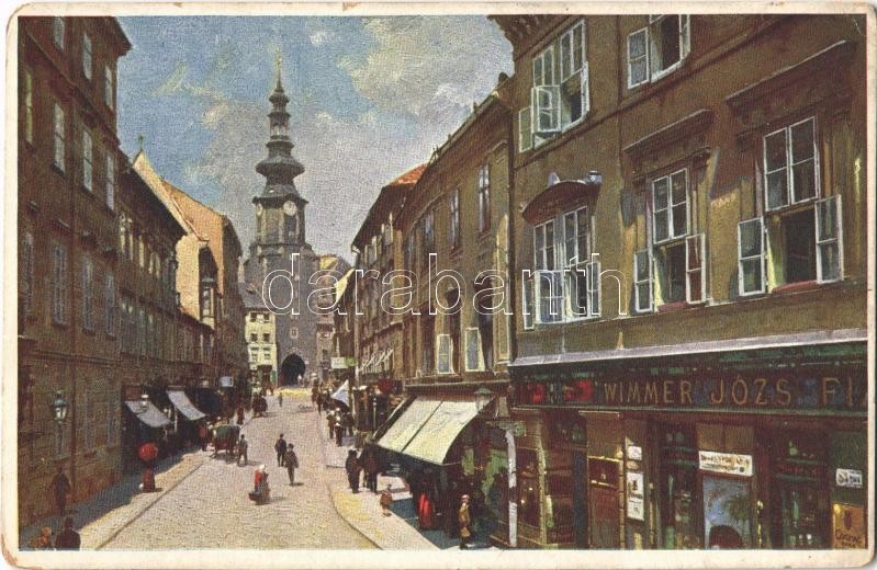 Leírás: Pozsony, Pressburg, Bratislava; Mihály utca, Wimmer József üzlete. Művészlevelezőlap Hausner H. 7031/3. / Michaelergasse / street view, shops (EM)