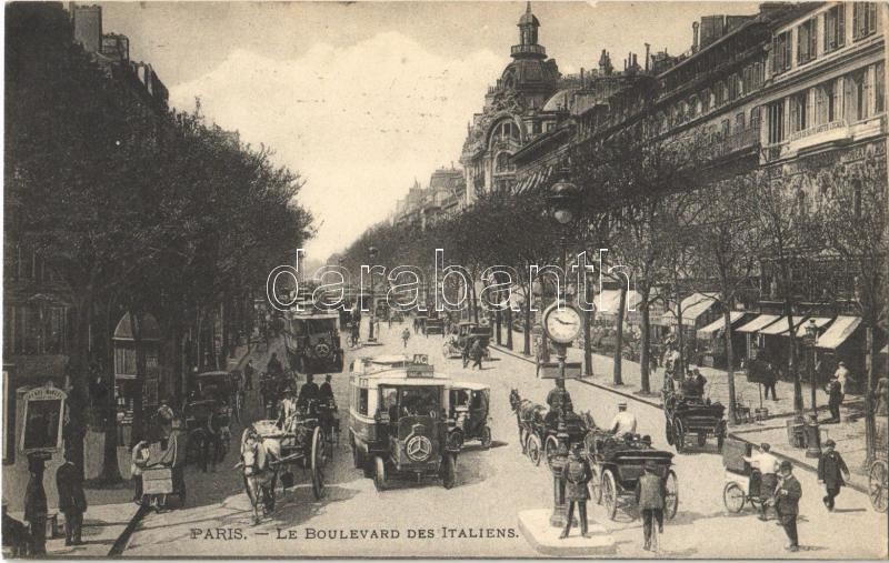 1914 Paris, Le Boulevard des Italiens / street, autobuses https://www.darabanth.com/hu/363-Gyorsarveres/363.0/Kepeslapok/Franciaorszag~1500027/1914-Paris-Le-Boulevard-des-Italiens-street-autobuses~II2097666