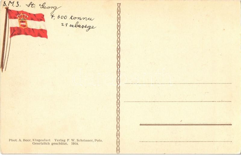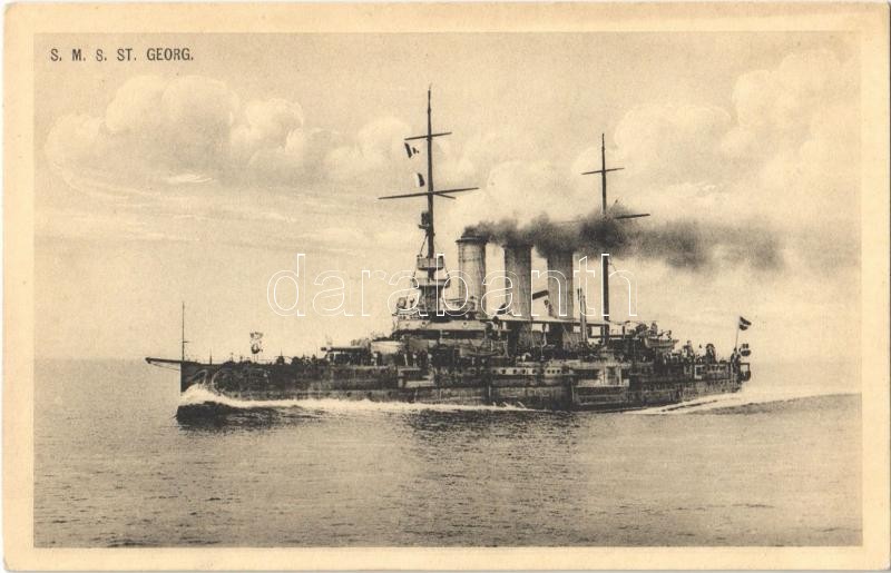 SMS Sankt Georg osztrák-magyar páncélos cirkáló / K.u.K. Kriegsmarine Panzerkreuzer / WWI Austro-Hungarian Navy, SMS Sankt Georg armored cruiser. Phot. A. Beer 1913