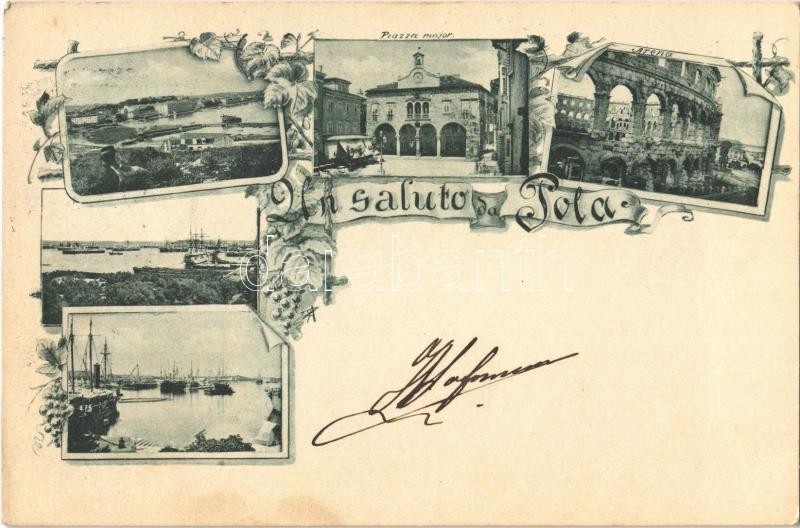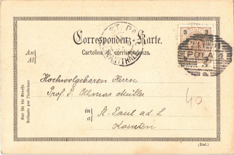 1901 Pola, Pula; Art Nouveau, floral https://www.darabanth.com/hu/363-Gyorsarveres/363.0/Kepeslapok/Horvatorszag~1500009/1901-Pola-Pula-Art-Nouveau-floral~II2098122