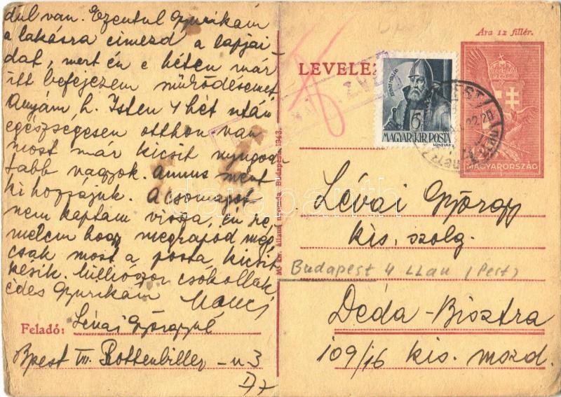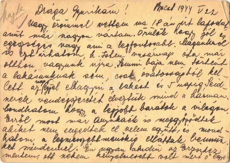 1944 Lévai Györgyné levele férjének Lévai György zsidó 109/16 KMSZ (közérdekű munkaszolgálatos) a dédabisztrai munkatáborba / WWII Letter to a Jewish labor serviceman from his wife to the labor camp of Bistra Muresului. Judaica (EB)