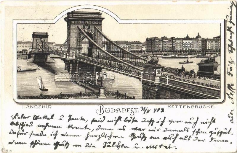 1902 Budapest, Lánchíd. Art Nouveau, litho (EK) https://www.darabanth.com/hu/363-Gyorsarveres/363.0/Kepeslapok/Magyarorszag~1500005/1902-Budapest-Lanchid-Art-Nouveau-litho-EK~II2096734