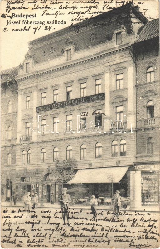 1906 Budapest VIII. József főherceg szálló, kávéház és étterem, Magyar... https://www.darabanth.com/hu/363-Gyorsarveres/363.0/Kepeslapok/Magyarorszag~1500005/1906-Budapest-VIII-Jozsef-foherceg-szallo-kavehaz-es-etterem-Magyarhoni-Uveg-Fuszer-~II2097791