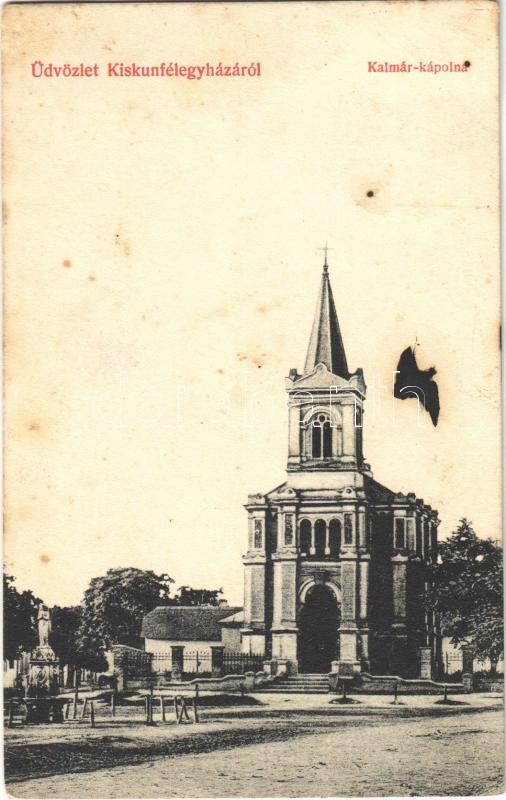1910 Kiskunfélegyháza, Kalmár kápolna. Kiadja Roykó B. 382. (fl) https://www.darabanth.com/hu/363-Gyorsarveres/363.0/Kepeslapok/Magyarorszag~1500005/1910-Kiskunfelegyhaza-Kalmar-kapolna-Kiadja-Royko-B-382-fl~II2094558