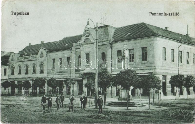 1918 Tapolca, Hotel Pannonia szálloda, Szentháromság szobor, üzletek. ... https://www.darabanth.com/hu/363-Gyorsarveres/363.0/Kepeslapok/Magyarorszag~1500005/1918-Tapolca-Hotel-Pannonia-szalloda-Szentharomsag-szobor-uzletek-Lowy-B-kiadasa-EK~II2098834