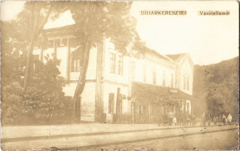 1926 Biharkeresztes, vasútállomás, vasutasok. photo https://www.darabanth.com/hu/363-Gyorsarveres/363.0/Kepeslapok/Magyarorszag~1500005/1926-Biharkeresztes-vasutallomas-vasutasok-photo~II2098107