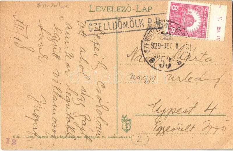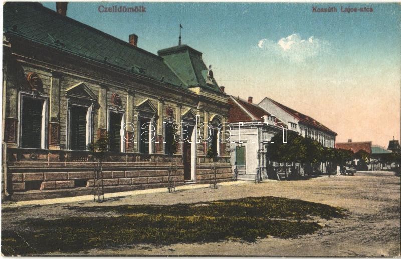 1929 Celldömölk, Kossuth Lajos utca. Vasúti Levelezőlapárusítás 1918. 6. sz. + "SZENTGOTTHÁRD - BUDAPEST 53 B" vasúti mozgóposta bélyegző + "CELLDÖMÖLK P.U." pályaudvar pecsét (EK)
