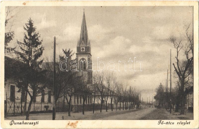 Leírás: 1934 Dunaharaszti, Főutca (kissé ázott sarok / slightly wet corner)