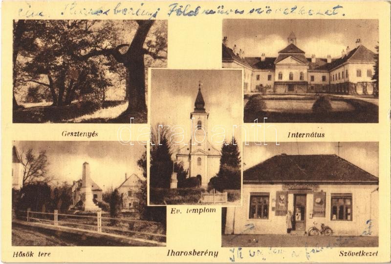 1950 Iharosberény, Gesztenyés, internátus, evangélikus templom, Hősök ... https://www.darabanth.com/hu/363-Gyorsarveres/363.0/Kepeslapok/Magyarorszag~1500005/1950-Iharosbereny-Gesztenyes-internatus-evangelikus-templom-Hosok-tere-szovetkezet~II2097560