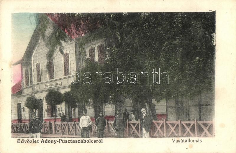 Adony-Pusztaszabolcs, Vasútállomás, vasutasok https://www.darabanth.com/hu/363-Gyorsarveres/363.0/Kepeslapok/Magyarorszag~1500005/Adony-Pusztaszabolcs-Vasutallomas-vasutasok~II1816752