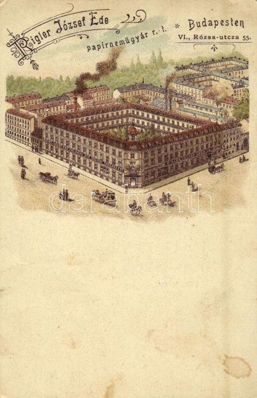 Budapest VI. Rigler József Ede papírneműgyár rt. Rózsa utca 55. litho ... https://www.darabanth.com/hu/363-Gyorsarveres/363.0/Kepeslapok/Magyarorszag~1500005/Budapest-VI-Rigler-Jozsef-Ede-papirnemugyar-rt-Rozsa-utca-55-litho-EK~II2065697