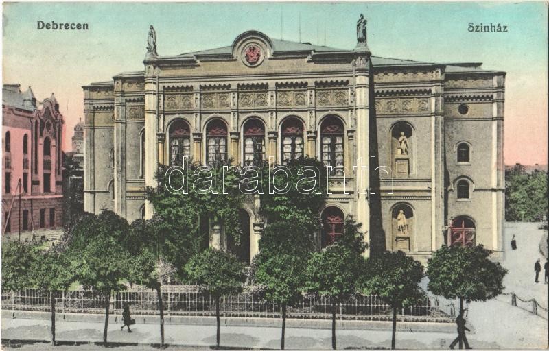 Leírás: Debrecen, színház + "Bayr. Hilfs-Lazarettzug No. 5."