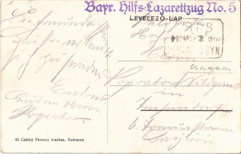 Debrecen, színház + "Bayr. Hilfs-Lazarettzug No. 5." https://www.darabanth.com/hu/363-Gyorsarveres/363.0/Kepeslapok/Magyarorszag~1500005/Debrecen-szinhaz-plus-Bayr-Hilfs-Lazarettzug-No-5~II2095499