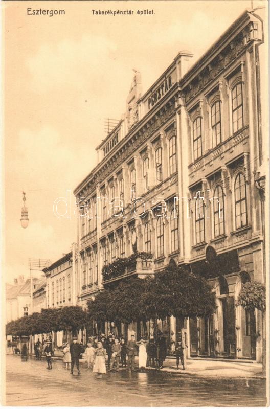 Esztergom, Takarékpénztár épülete. Tatarek József kiadása https://www.darabanth.com/hu/363-Gyorsarveres/363.0/Kepeslapok/Magyarorszag~1500005/Esztergom-Takarekpenztar-epulete-Tatarek-Jozsef-kiadasa~II2100176