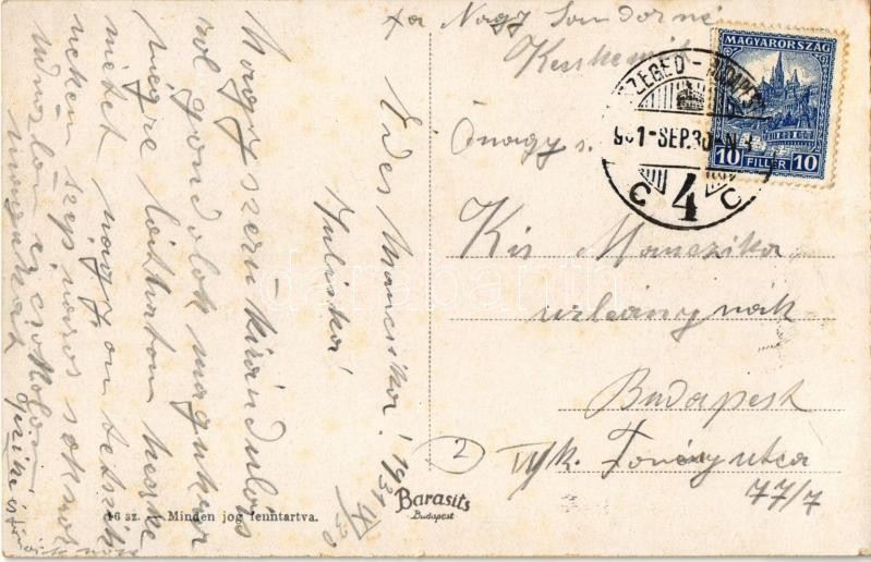 Leírás: Kecskemét, Szabadság tér, zsinagóga, Magyar általános Hitelbank + "Szeged Budapest 4." mozgóposta