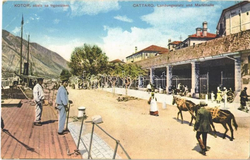1915 Kotor, Cattaro; Obala sa trgovistem / Landungsplatz und Markthalle / coast, port, marketplace, vendors, mariners + "K.u.K. Festungsartillerieregiment Freiherr von Rouvroy Nr. 5. Feldkompagnie Nr. 3." (EK)
