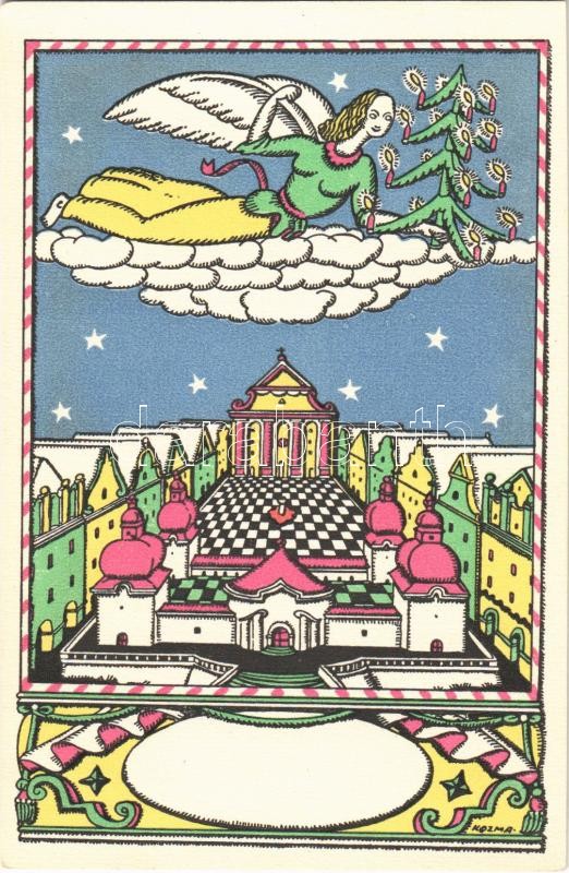 Leírás: Karácsony. Nyomtatta és kiadja Knerr Izidor, Gyoma / Hungarian art postcard with Christmas angel s: Kozma