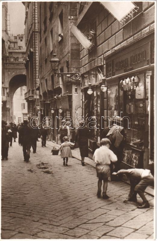 Leírás: Genova, Vecchia Genova Artistica, Biancheria Maglieria / old street, Linen Knitwear shop (gluemarks)